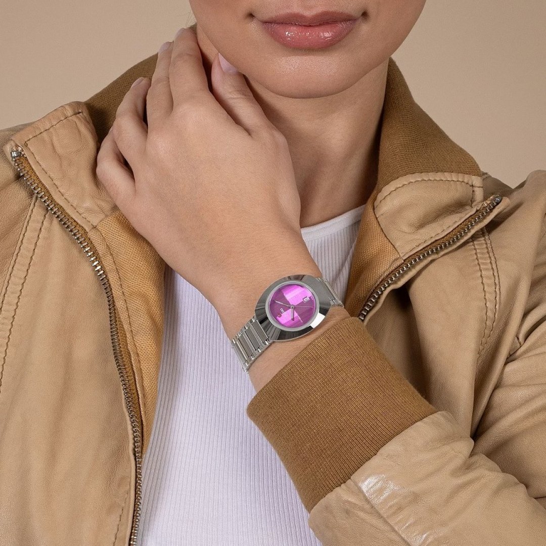 luxusné hodinky luxusné hodinky Rado DiaStar Original Automat, Vode odolnosť 100M, 38 mm. Hodinky disponujú funkciami luminiscencia, ukazovateľ dátumu a Day-Date. Základné parametre hodín sú: typ strojčeka je mechanické hodinky s automatickým náťahom, materiál remienka je oceľ, vode odolnosť je 100 m a farba ciferníka je fialová.
