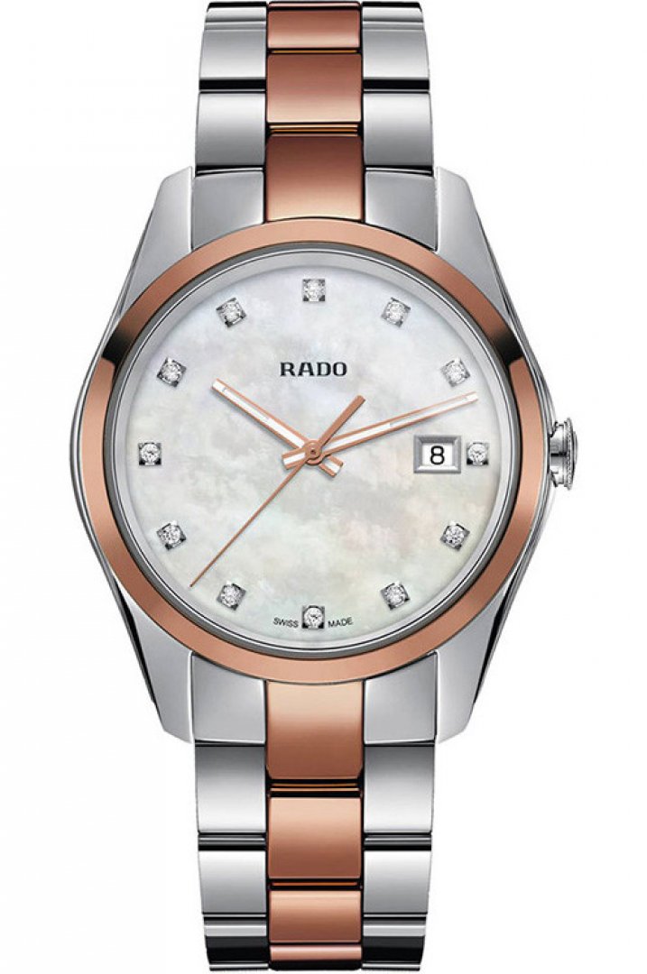 Luxusné hodinky Rado Hyperchrome Diamanty, Quartz, 39 mm. Hodinky disponujú funkciami ukazovateľ dátumu. Základné parametre hodín sú: typ strojčeka je Quartz hodinky, farba ciferníka je perleť, materiál remienka je keramika a oceľ a vode odolnosť je 30 m.