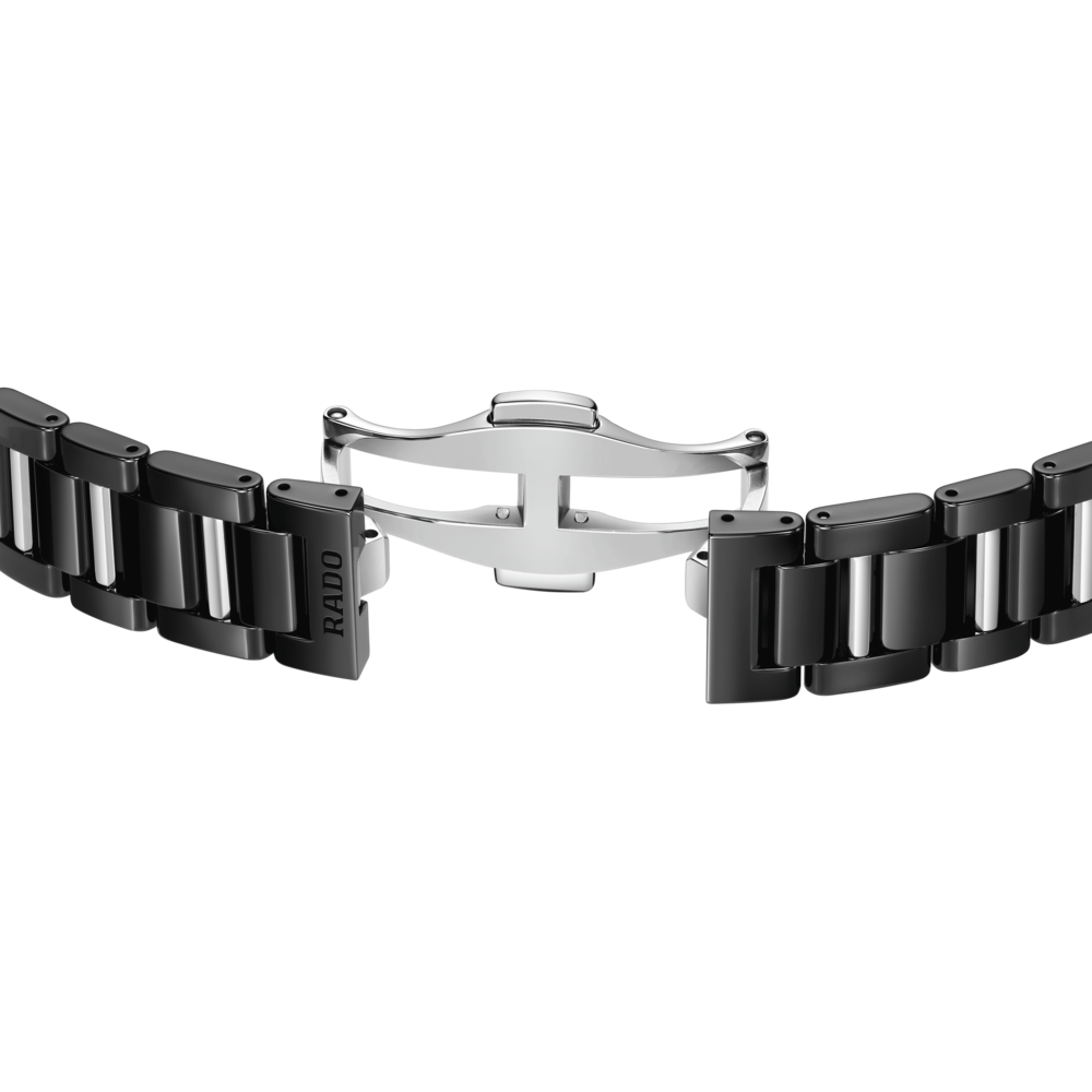 - Náramok: leštená čierna high-tech keramika doplnená dekoratívnymi prvkami z nerezovej ocele a elegantnou sponou