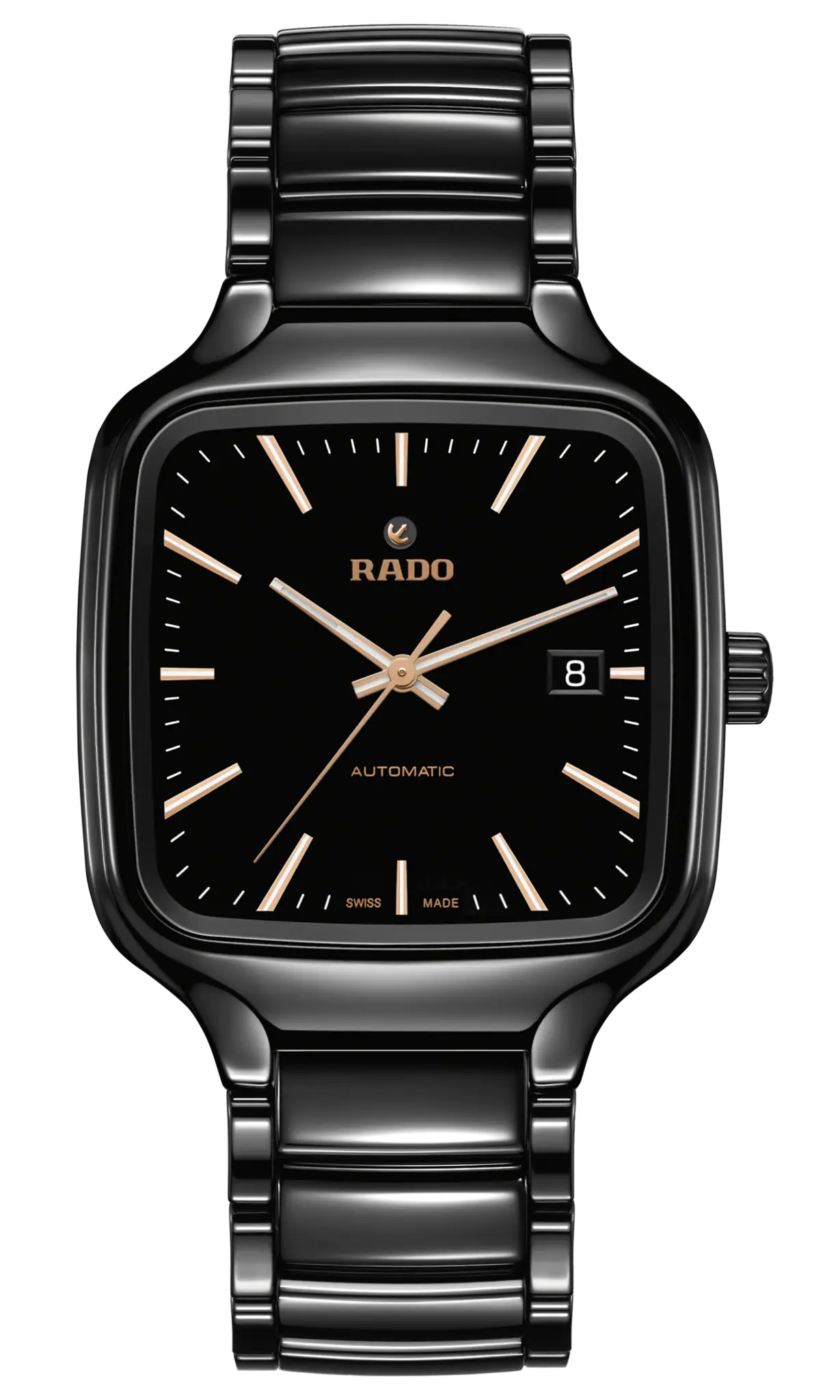 luxusné hodinky luxusné hodinky Rado True SQUARE AUTOMATIC Automat, 38 mm. Hodinky disponujú funkciami luminiscencia a ukazovateľ dátumu. Základné parametre hodín sú: typ strojčeka je mechanické hodinky s automatickým náťahom, materiál remienka je keramika a titan, vode odolnosť je 50 m a farba ciferníka je čierna.