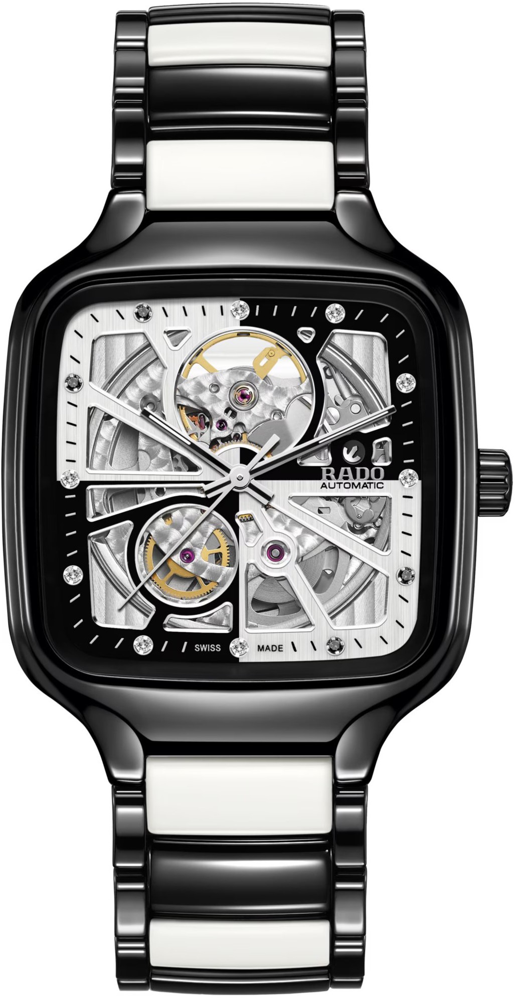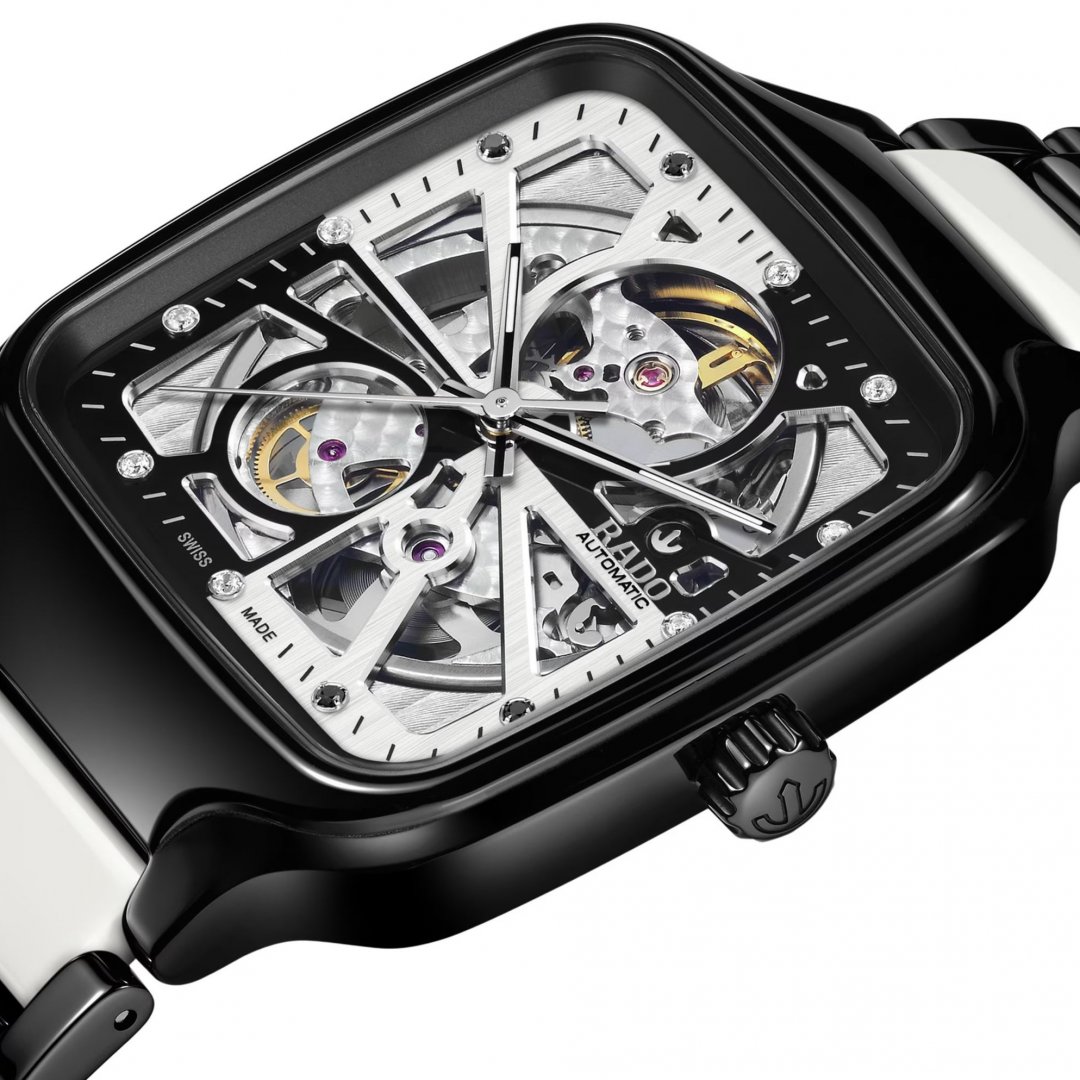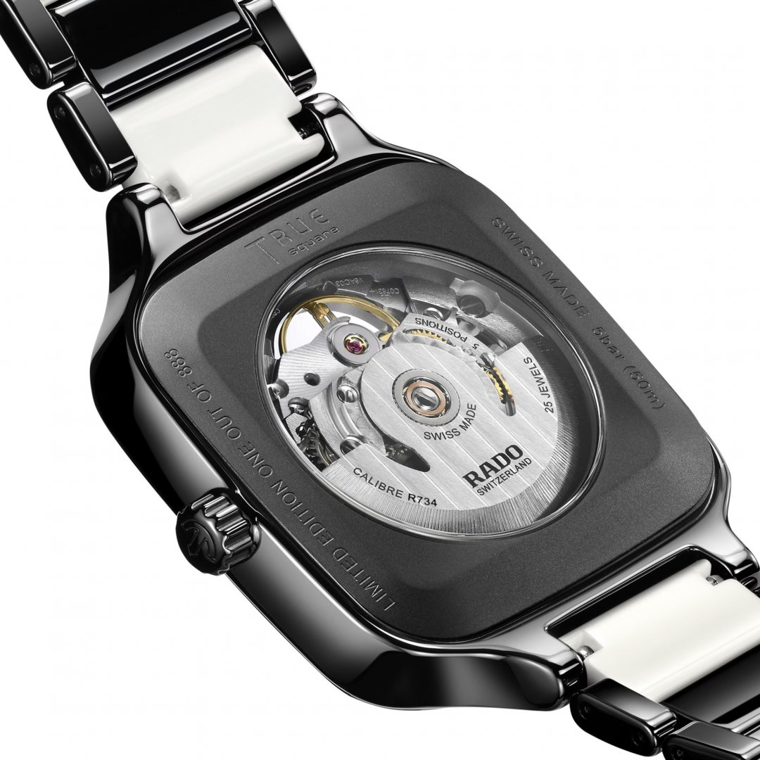 luxusné hodinky luxusné hodinky Rado True SQUARE AUTOMATIC OPEN HEART Diamanty, Automat, 38 mm. Základné parametre hodín sú: typ strojčeka je mechanické hodinky s automatickým náťahom, materiál remienka je keramika a titan, vode odolnosť je 50 m a farba ciferníka je priehľadná.