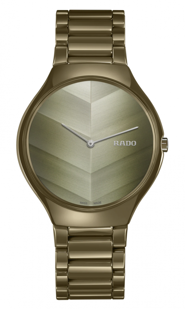 luxusné hodinky Rado True Thinline x Great Gardens of the World Keramika, Quarrtz, 39 mm. Základné parametre hodín sú: typ strojčeka je Quartz hodinky, materiál remienka je keramika, vode odolnosť je 30 m a farba ciferníka je hnědá.