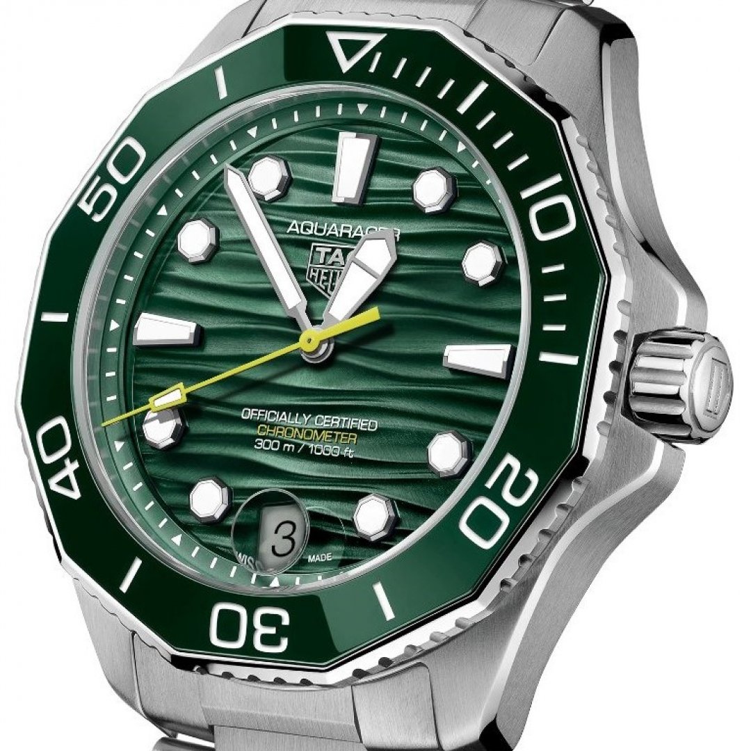 luxusné hodinky TAG Heuer Aquaracer Professional 300 Date TH31-00 C.O.S.C., Vode odolnosť 300M, 42 mm. Hodinky disponujú funkciami luminiscencia a ukazovateľ dátumu. Základné parametre hodín sú: typ strojčeka je mechanické hodinky s automatickým náťahom, materiál remienka je oceľ, vode odolnosť je 300 m a farba ciferníka je zelená.