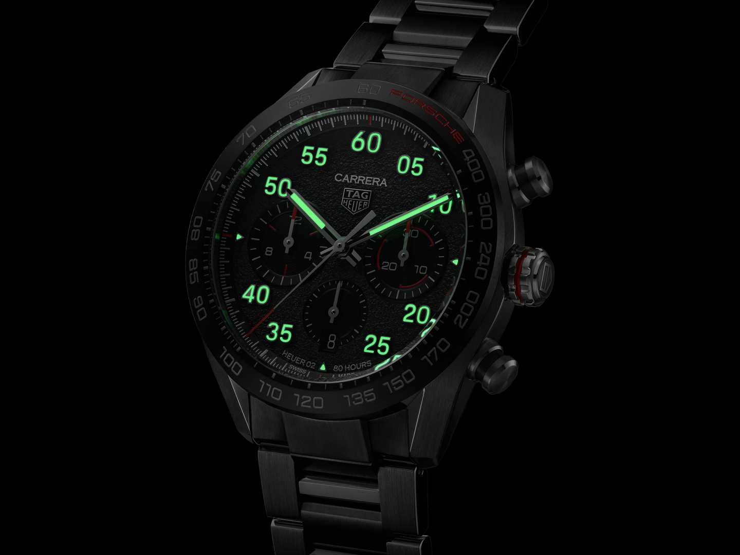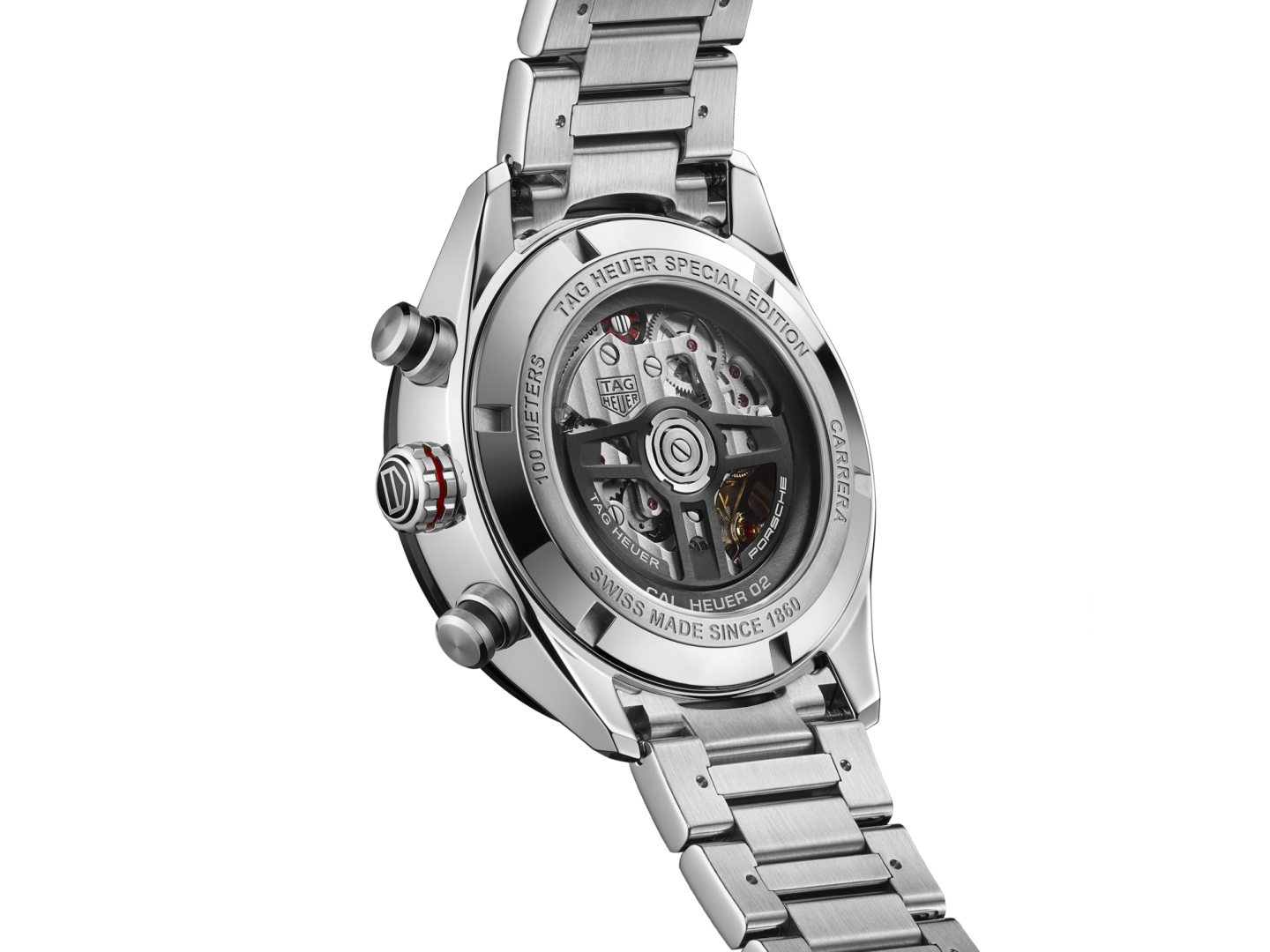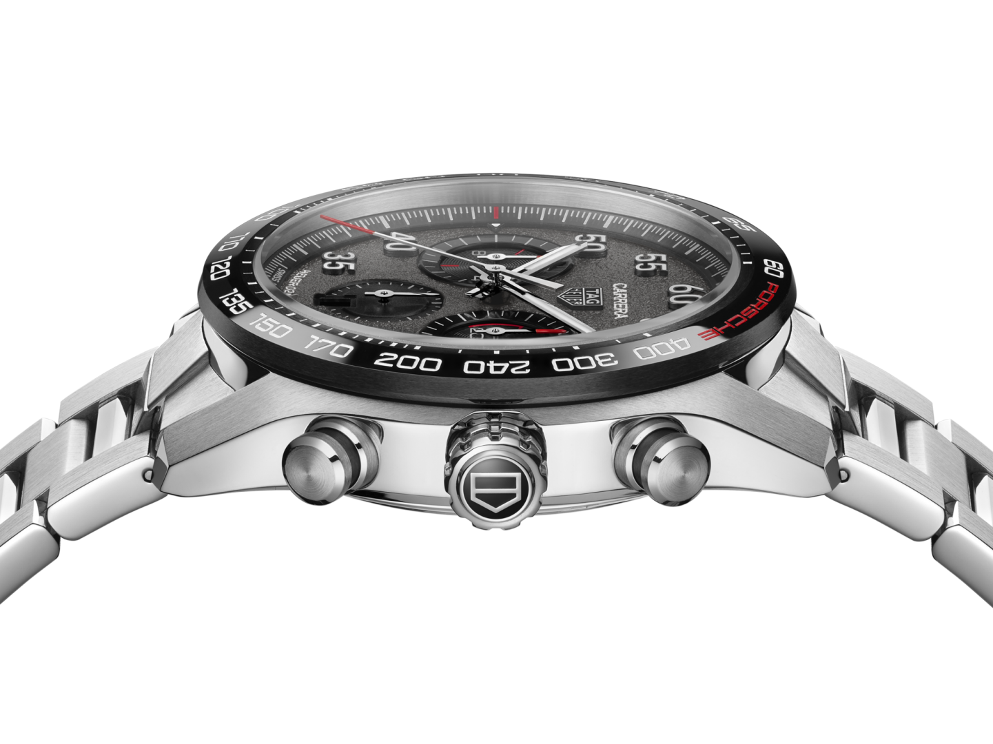 Športové hodinky švajčiarske hodinky TAG Heuer Carrera TAG HEUER X PORSCHE SPECIAL EDITION HEUER 02, Vode odolnosť 100M, 44 mm. Hodinky disponujú funkciami luminiscencia, stopky, tachymeter a ukazovateľ dátumu. Základné parametre hodín sú: typ strojčeka je mechanický chronograf s automatickým náťahom, materiál remienka je oceľ, vode odolnosť je 100 m a farba ciferníka je šedá.