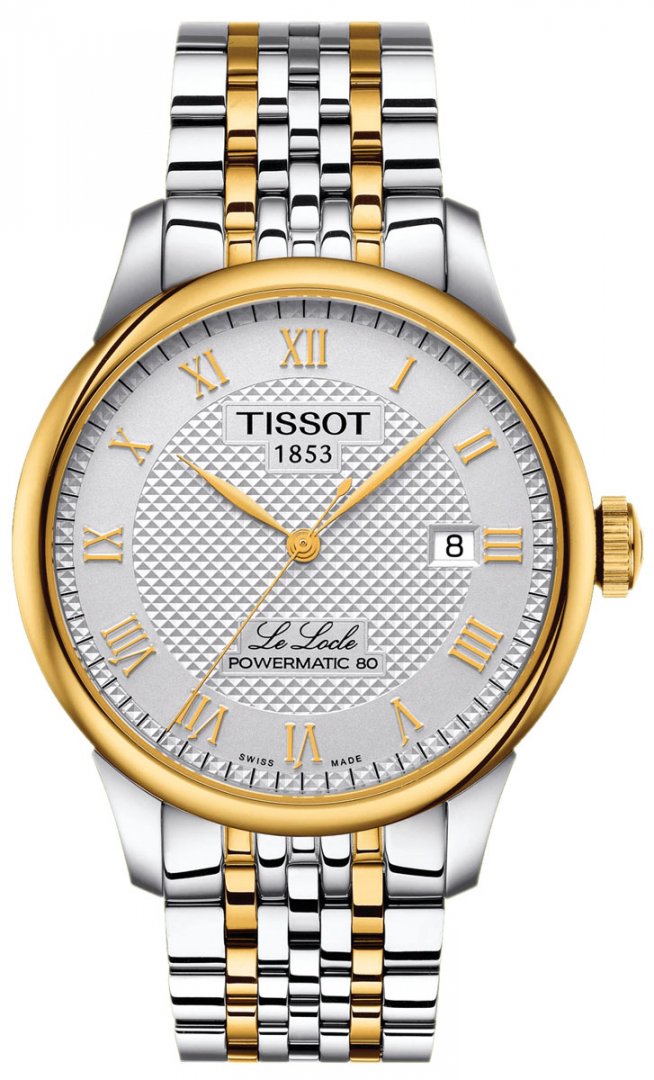 luxusné hodinky Tissot T-Classic LE LOCLE Powermatic 80, Automat, 39 mm. Základné parametre hodín sú: typ strojčeka je mechanické hodinky s automatickým náťahom, vode odolnosť je 30 m, farba ciferníka je strieborná a materiál remienka je oceľ.