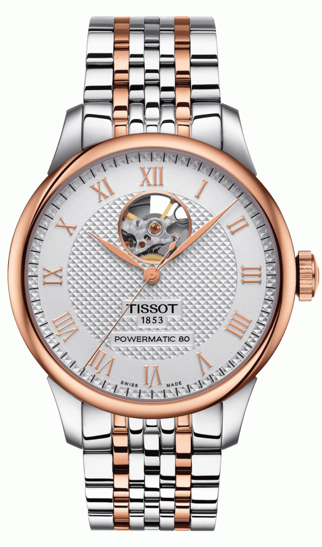 luxusné hodinky Tissot T-Classic LE LOCLE OPEN HEART Powermatic 80, Automat, 39 mm. Základné parametre hodín sú: typ strojčeka je mechanické hodinky s automatickým náťahom, vode odolnosť je 30 m, farba ciferníka je strieborná a materiál remienka je oceľ.