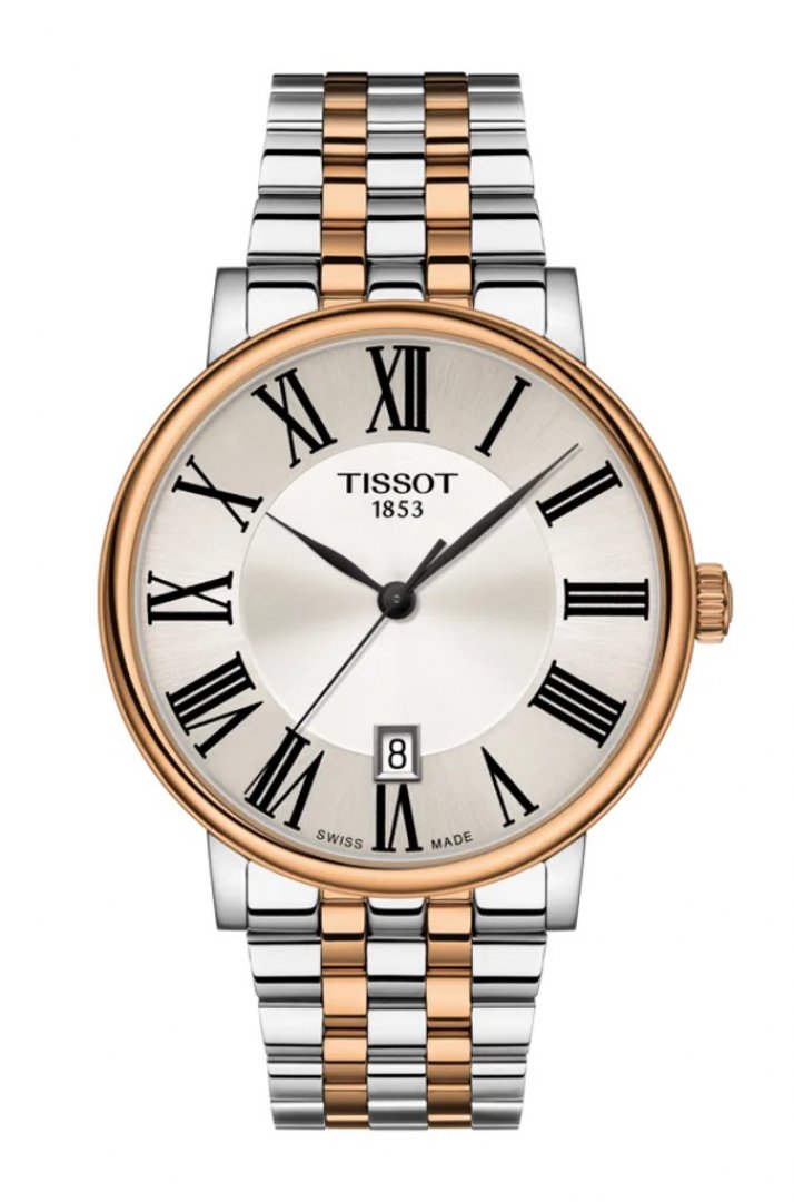luxusné hodinky Tissot T-Classic Carson Premium Quartz, 40 mm. Hodinky disponujú funkciami ukazovateľ dátumu. Základné parametre hodín sú: farba ciferníka je strieborná, typ strojčeka je Quartz hodinky, vode odolnosť je 50 m a materiál remienka je oceľ.