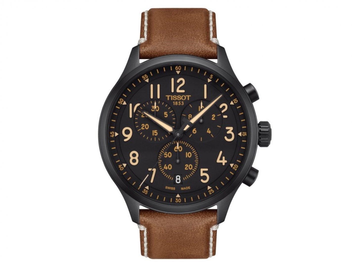 luxusné hodinky Tissot T-Sport CHRONO XL, Vode odolnosť 100M, 45 mm. Hodinky disponujú funkciami luminiscencia, stopky a ukazovateľ dátumu. Základné parametre hodín sú: typ strojčeka je Quartz chronograf, vode odolnosť je 100 m, farba ciferníka je čierna a materiál remienka je koža.