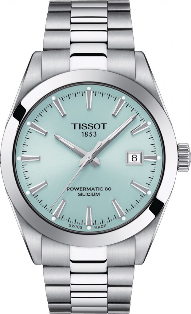 luxusné hodinky Tissot T-Sport GENTLEMAN SILICIUM Powermatic 80, Vode odolnosť 100M, 40 mm. Hodinky disponujú funkciami luminiscencia a ukazovateľ dátumu. Základné parametre hodín sú: typ strojčeka je mechanické hodinky s automatickým náťahom, materiál remienka je oceľ, vode odolnosť je 100 m a farba ciferníka je modrá.