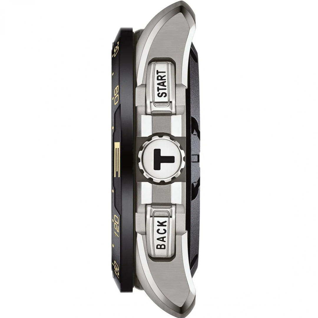 luxusné hodinky Tissot Touch Collection CONNECT SOLAR Bluetooth, Vode odolnosť 100M, 47.50 mm. Hodinky disponujú funkciami alarm, barometer, duálny čas, GPS, kalendár, kompas, luminiscencia, osvetlenie, odpočítavanie času, stopky, teplomer, tréningové funkcie, ukazovateľ dátumu, večný kalendár, výškomer, multifunkčné, GPS , Bluetooth® a Dotyková obrazovka. Základné parametre hodín sú: farba ciferníka je čierna, typ strojčeka je Quartz chronograf a špeciálne, materiál remienka je kaučuk a textil a vode odolnosť je 100 m.