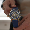 S Camillou sme ešte chvíľu debatovali o novinkách a zhodli sme sa, že najzaujímavejším modelom pre nás oboch je Multifort Skeleton Chronograph na modrom kaučukovom remienku. Z hľadiska tvaru, funkčnosti a materiálov je to jednoznačne Mido model, ale majstri hodinári do jeho DNA nenápadne prepašovali aj čosi nové a neotrepané – čo sa nám veľmi páčilo.
